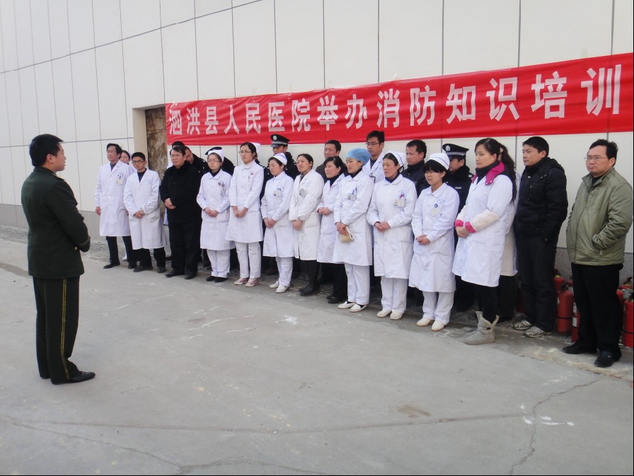 泗洪县人民医院为了加强消防安全,提高干部职工的消防意识,正确掌握灭火器使用的方法。2月18日,泗洪县人民医院组织了一场防火安全消防演练活动,泗洪县消防大队专业技术人员前来为医院参训人员授课。