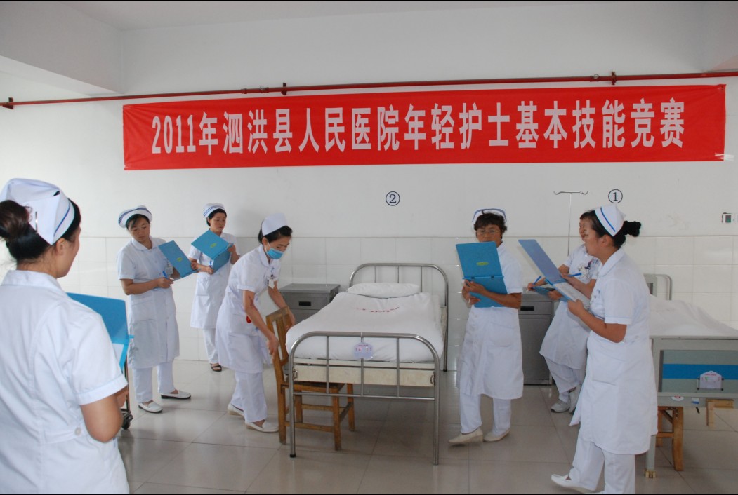 导读: 为进一步贯彻落实江苏省卫生厅《关于实施江苏省年轻护士素质提高活动的通知》精神,全力提高年轻护士理论水平和技术操作水平。8月18日至19日,泗洪县人民医院精选优秀选手在院办三楼会议室和十病区大厅举办“年轻护理人员理论比赛”及“年轻护理人员基本技能操作比赛”活动。通过这次大练兵,评出静脉输液、铺备用床、理论考试三项单项奖、一项综合奖、一项优秀组织奖。
