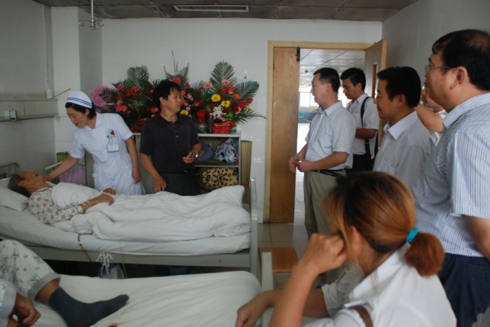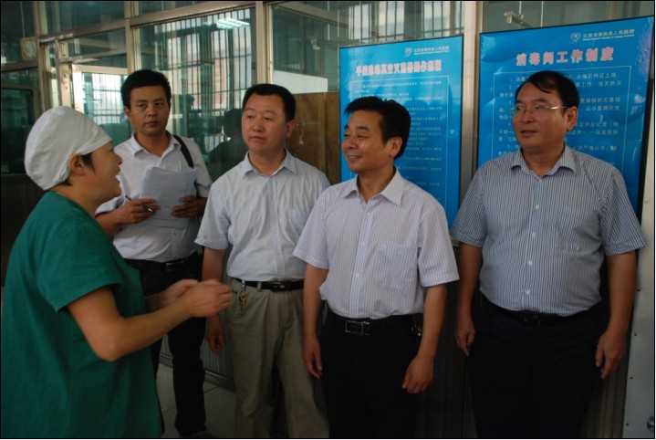 为加强机关作风建设,及时发现和纠正工作中存在的问题和不足,更好履行工作职能,为广大服务对象提供优质服务。9月15日上午,泗洪县卫生局召开卫生系统机关行风建设会议。下午,该县卫生局局长许真祥、纪委书记赵玉田等领导来到洪医集团13病区、6病区、供应室等科室调研,走访病人及病人家属,了解病人对医护人员的服务质量,调研医院的先进医疗设备和医护人员的爱岗敬业精神,洪医集团副董事长、常务副院长高明献陪同调研。通过走访调研,病人及病人家属对医护人员的优质服务十分满意,县卫生局领导对洪医集团近年来的快速发展给予充分肯定。