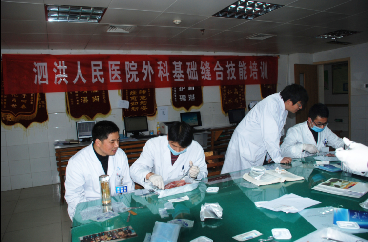 为进一步提高外科缝合基本操作技能,提升医疗服务质量,11月15日,泗洪县人民医院组织了一次外科基础缝合技能培训。除了由资深外科专家为全体外科医生深入浅出、图文并茂的讲述了腹部各部分切口及腹腔内肠管缝合的各类技术要点外,还利用标本对低年资外科医生现场演示缝合技术。在专家们的指导下,进修、实习医生及低年资外科医生加强了外科临床专业的基本功训练,大大提高了临床基本操作技能。