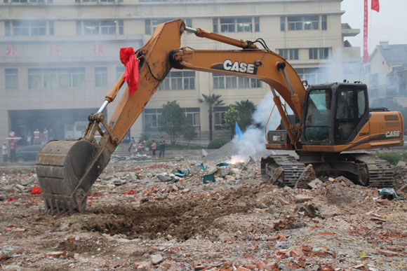 (记者莫开武 通讯员杜伟)“我宣布泗洪县人民医院门急诊大楼破土动工,鸣炮奏乐!”6月15日上午8时28分,随着洪医集团董事长高开亮一声令下,挖掘机飞舞着手臂上下翻飞,施工现场欢声雷动,鞭炮震天。标志着泗洪的医疗卫生事业将步入一个全新的发展阶段。