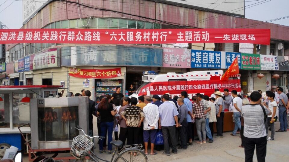 9月25日,泗洪县人民医院近10名医护人员到朱湖镇开展“践行群众路线,追求群众满意”为主题的“六大服务村村行”义诊活动,以实际行动践行党的群众路线,切实深入基层解决老百姓看病难问题。