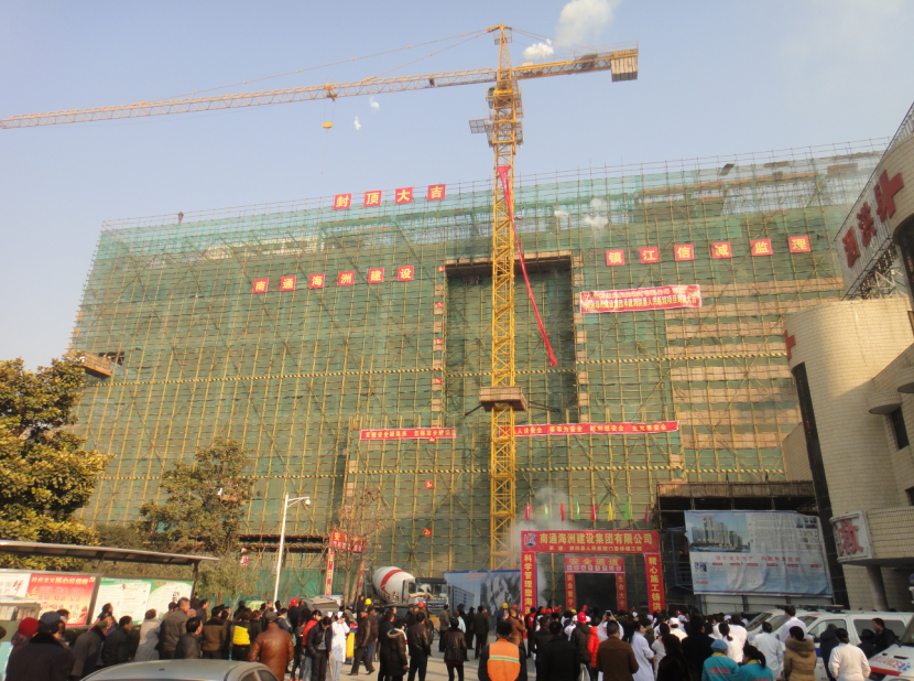 12月24日上午9时许,随着最后一方混凝土被吊车高高提至楼顶,标志着封顶的最后一次浇灌顺利完成。站在楼下的泗洪县人民医院的医护人员纷纷拿起相机,记录下这难忘的一刻。当日,泗洪县人民医院门急诊综合楼封顶仪式隆重举行,泗洪县人民医院集团领导高开亮、高明献、朱冬承以及工程建设单位的相关领导出席了仪式。
