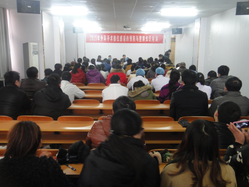 为进一步加强医院感染管理工作,有效预防医院感染的发生,2月3日,泗洪县人民医院组织了一次外科手术部位感染的预防和控制知识培训活动。全院外科医生,包括五官科、妇产科、麻醉科及麻醉科护士、所有临床进修实习生均参加了此次培训。