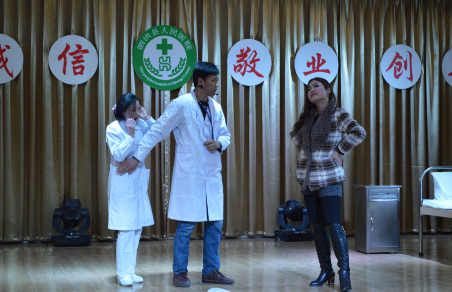 3月5日晚,在该集团的精心组织下,来自泗洪县人民医院、中医院、第三人民医院的50余名医护人员经过前期排练,一场医护人员自编自演的节目表演在洪医集团综合楼6楼第一会议室举行,以此来庆祝即将到来的“三八节”,集团领导高开亮、朱冬承、吴保安、颜小东、董红军以及受邀嘉宾汤光忻、徐炎山、许存亚、许卫国等一同观看了晚会,并为获奖节目颁奖。
