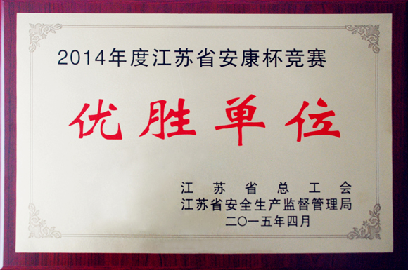 我院获得2014年度江苏省安康杯竞赛“优胜单位”荣誉称号
