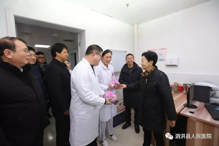 导读:春节将至,数九寒冬,1月23日上午8点,洪医集团董事长高开亮,副董事长、县人民医院院长高明献携领导班子及职能科室负责同志,分别到泗洪县人民医院、泗洪县中医院、泗洪县第三人民医院,亲切看望节日期间在岗值班的工作